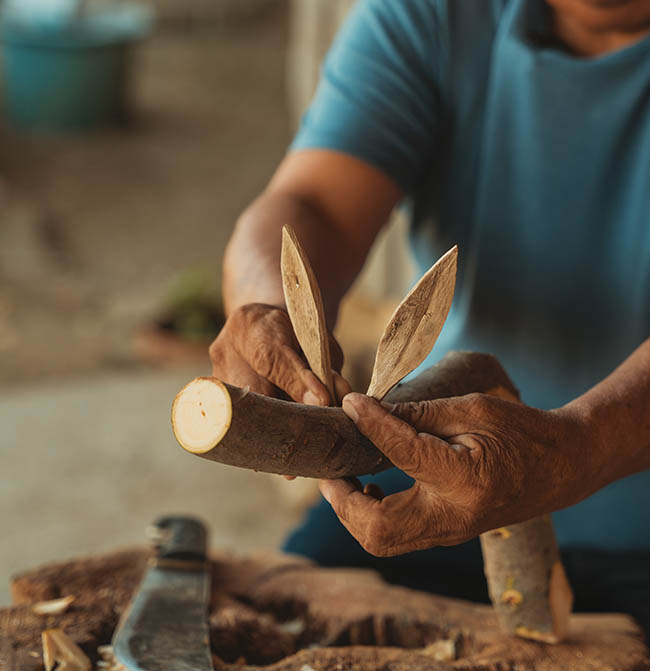He began carving wood at the age of 14. His first pieces were armadillos, and among the figures, Christopher Columbus and his ship stand out.