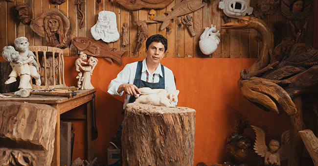 Efraín is part of the third generation of wood carvers. He began carving at the age of 7 under the supervision of his father Epifanio Fuentes, who learned from his father.