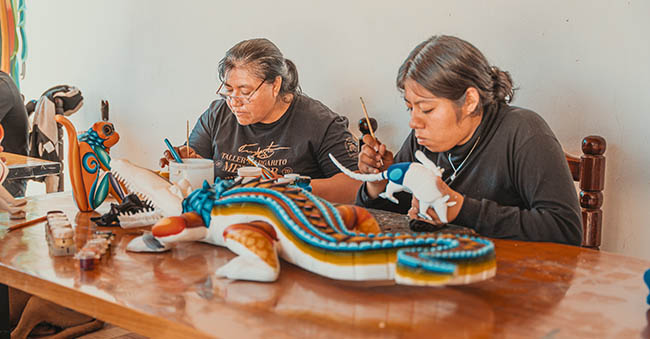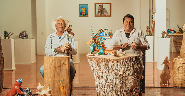 He was the first director of FONART in the city of Oaxaca and exhibited his works from 1968 in the United States, as well as in the cities of Tokyo and Osaka in Japan. At the beginning, Isidoro Cruz invited some families to his house, of which the Fuentes family stands out (Epifanio Fuentes, Zenén Fuentes, Celedonio Fuentes), the Xuana family (Ventura Fabián), and Margarito Melchor Fuentes. They began making simple toys like tops, slingshots, and hopscotch.