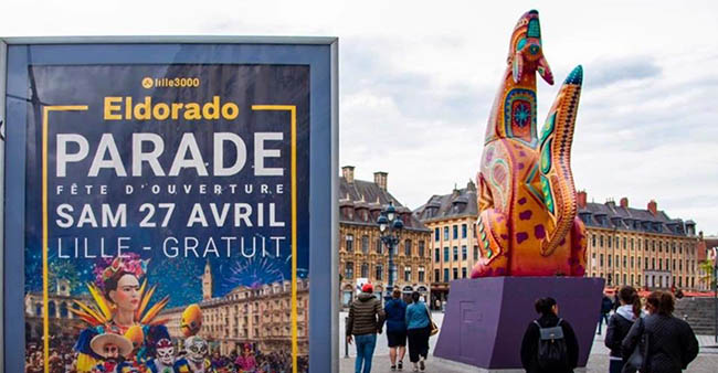 En 2019, México fue el punto de atención de un festival cultural de ocho meses titulado ELDORADO, presentado en la ciudad de Lille, Francia, y sus alrededores (www.lille3000.com). Los eventos incluyeron exposiciones, música, gastronomía, lucha libre, cine, literatura, talleres y un desfile inaugural inspirado en la Mega Procesión del Día de Muertos de la Ciudad de México. A través de 92 exposiciones y más de 1500 actividades diferentes, aproximadamente 3 millones de personas pudieron experimentar diferentes formas de la cultura mexicana. Esto, por supuesto, se vio aún más amplificado por la repercusión en redes sociales y prensa.